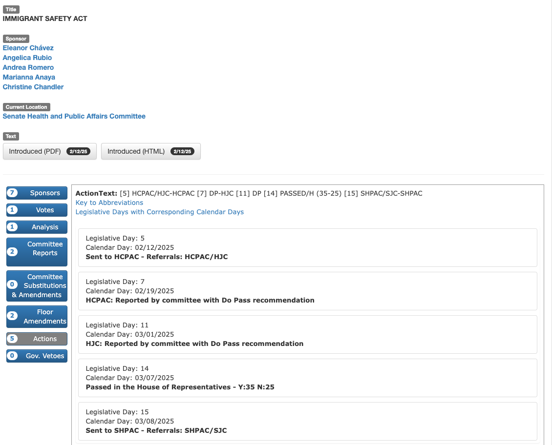 Commissioner Jaramillo, during the commissioners' reports section of the meeting, discussed her concerns regarding how House Bill 9, titled the Immigrant Safety Act, had passed the New Mexico House of Representatives (it is currently in committee with the Senate). House Bill 9 would (1) block counties from entering into agreements with private prisons or Immigrations and Customs Enforcement for the housing of immigration detainees and (2) require counties with preexisting agreements with ICE and private prisons to terminate those agreements. This measure targets the Torrance County Detention Facility (TCDF) and the Otero County Processing Center (OCPC). Jaramillo expressed concern regarding the potential closure of the TCDF. Jaramillo also discussed a fire that occurred yesterday in Punta de Agua. She noted that residents in Manzano had requested a pumper/tanker fire truck be stationed in the area. In the Zoom chat window, Torrance County Deputy Fire Chief Hanna Sanchez wrote a message stating her opposition to locating a fire truck in Manzano. Jaramillo said that five residents of Manzano had been certified in wildland firefighting and that Manzano had designated a location to house the truck.