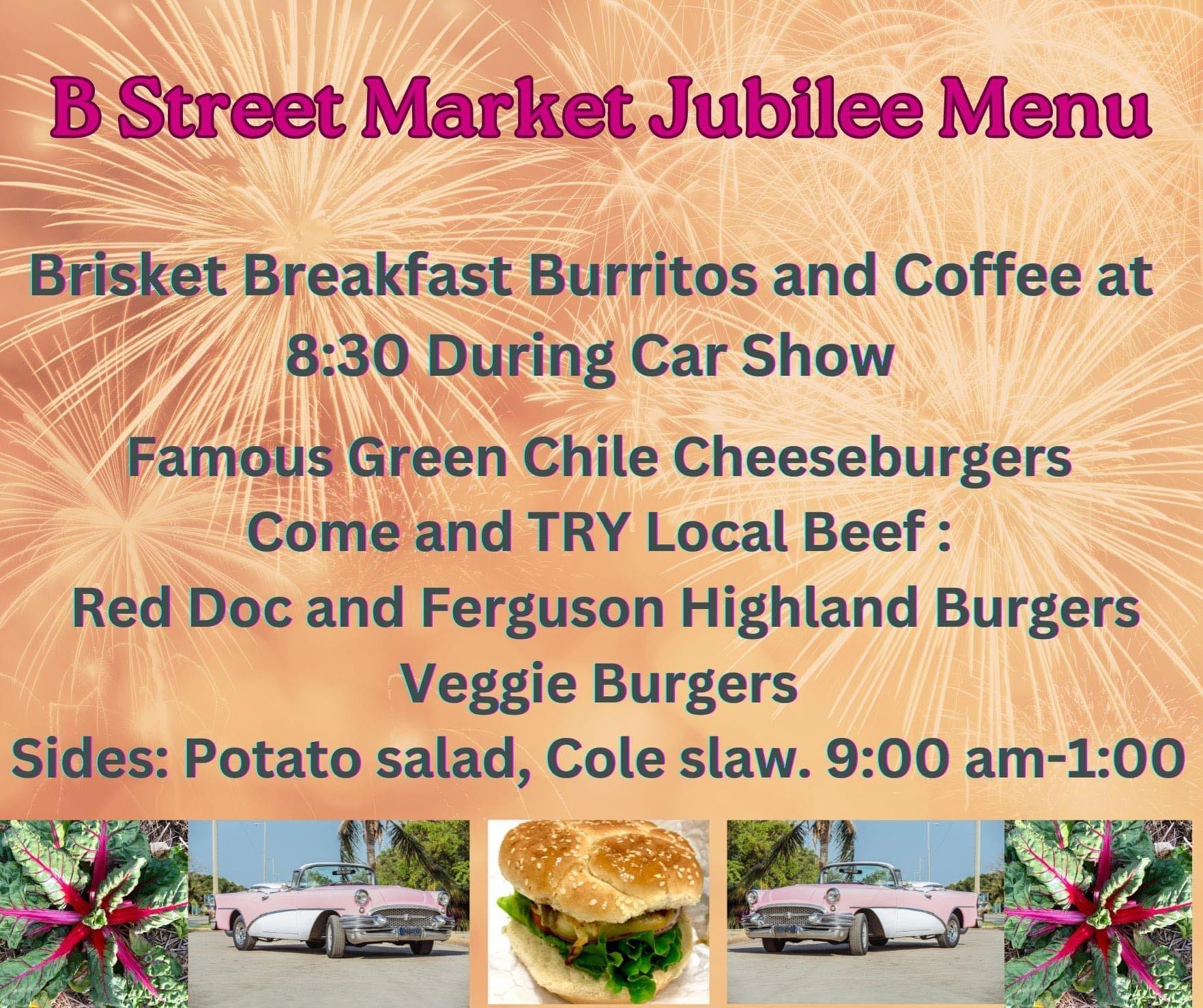 - What to Expect: B Street Market's green chile cheeseburgers are mainstays of the Mountainair Jubilee, made with Red Doc and Ferguson Highland Burgers (there will be veggie burgers as well), and you can usually tell when the grill fires up just from the delicious smell.
