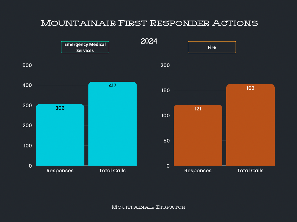 EMS Chief Josh Lewis advised the town council of the number of calls received - and responded to - by the Mountainair Volunteer Fire Department and the Mountainair EMS Department in 2024. The fire department provided 121 responses to 162 calls over the course of 2024, a 74.7% response rate. The EMS department responded to 306 calls of the 417 it received in 2024, a 73.4% response rate.