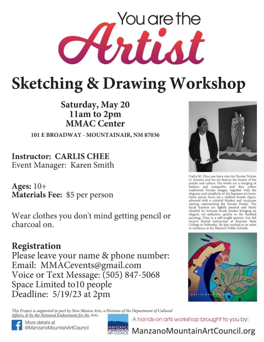 You Are the Artist! Sketching and Drawing Workshop, 11:00 AM - 2:00PM, Saturday, May 20, 2023, MMAC Center, 101 E Broadway, Mountainair, NM 87036