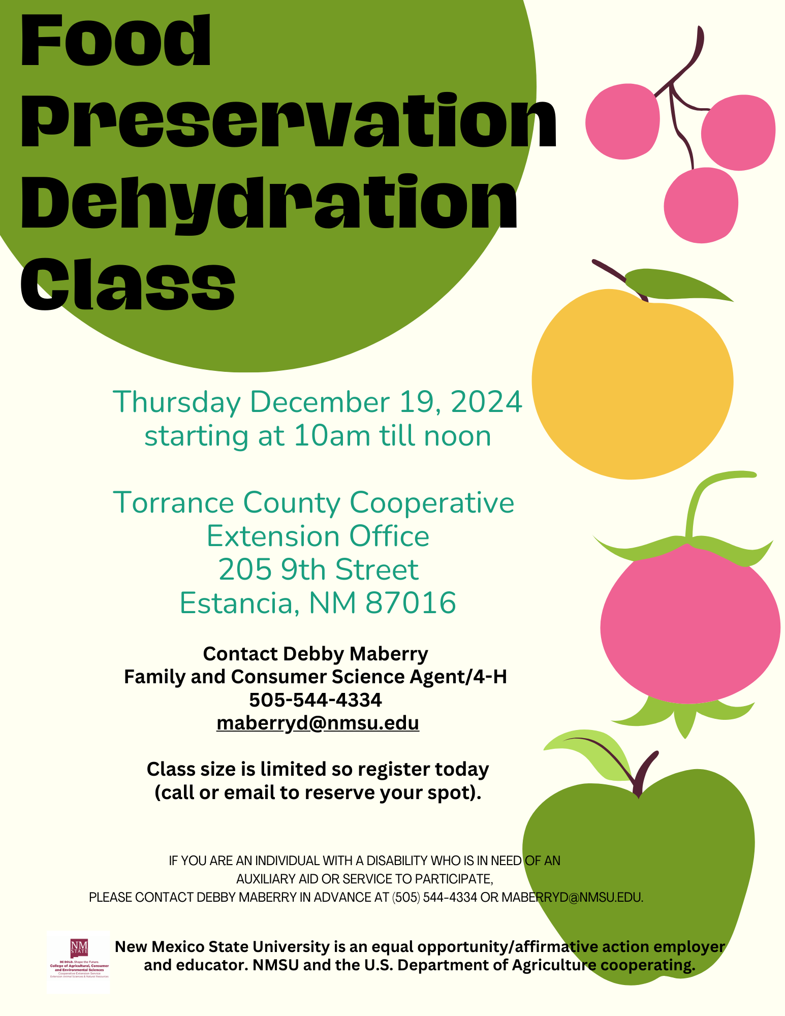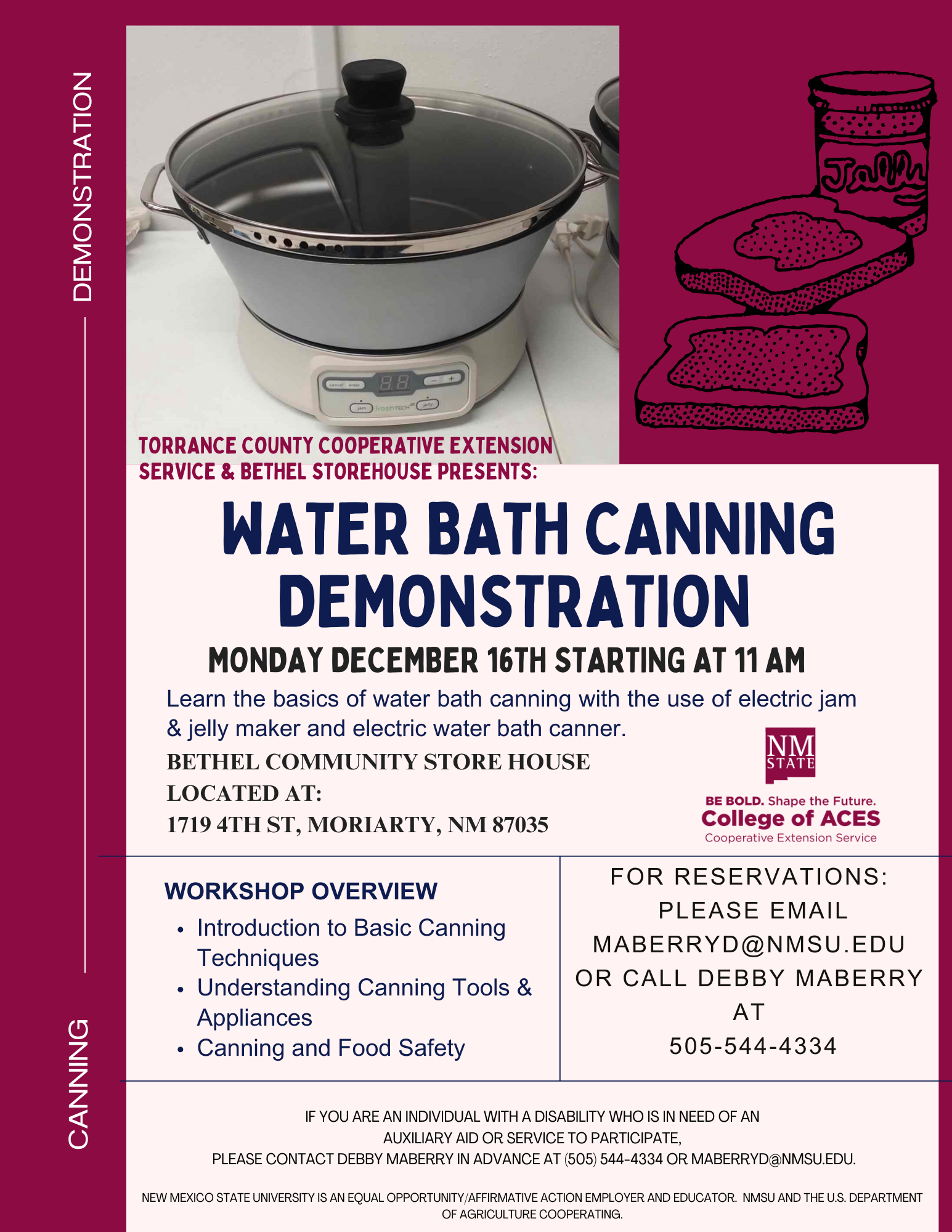 - For reservations contact Debby Maberry at maberryd@nmsu.edu or 505-544-4334
