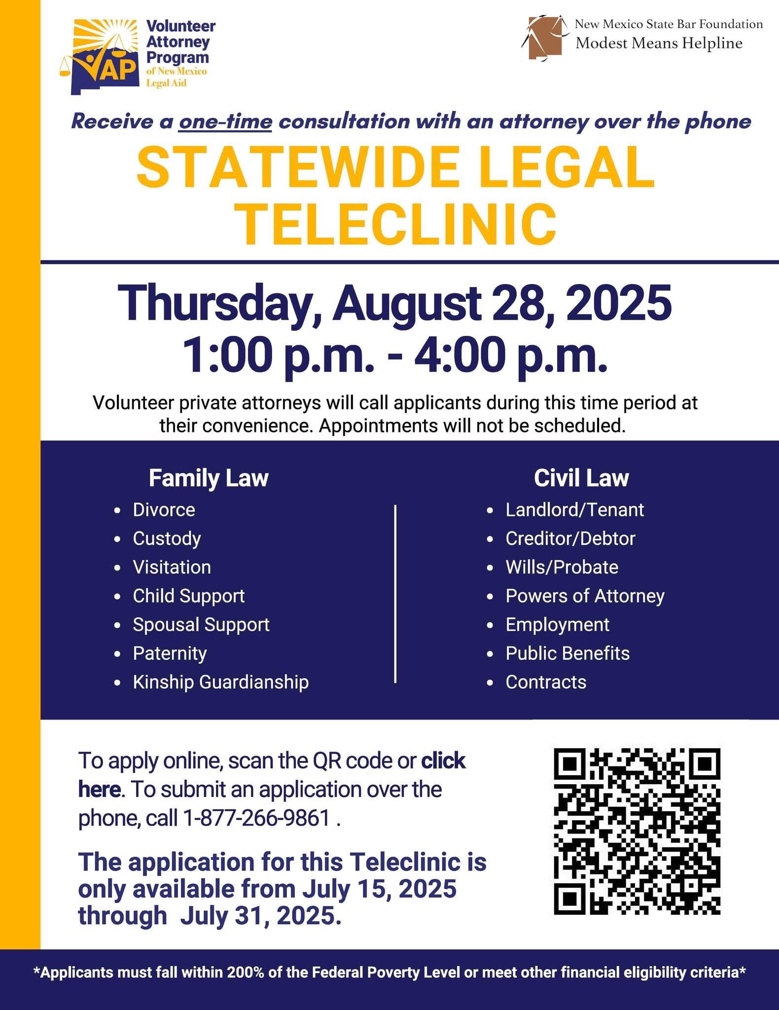 - Teleclinic occurs August 28, 29025, from 1:00 PM to 4:00 PM