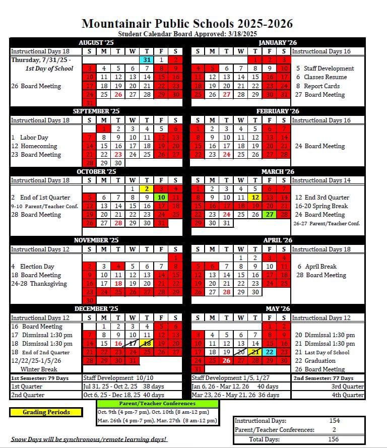 Mountainair Public Schools Student Calendar